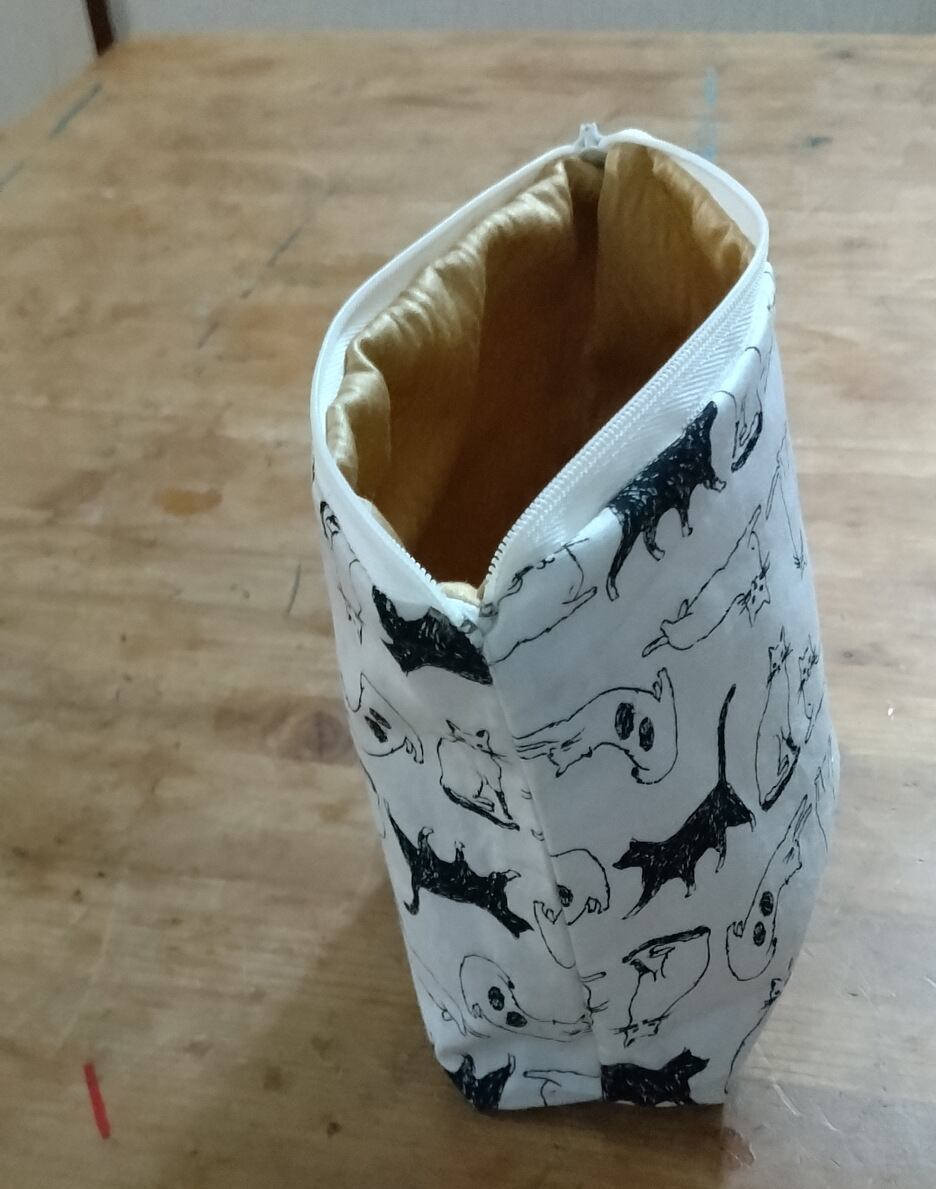 注意:素人のハンドメイド作品で、完全にまっすぐでなかったり、接着芯の付け方や縫い目が綺麗ではなかったりします。裏地はミシンで縫い留めてあります。ご理解のほど、よろしくお願いします。
